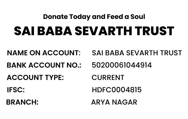 At Sai Baba Sevarth Trust, we believe in the power of kindness and community. Inspired by Sai Baba’s teachings of love and compassion, we are committed to serving those in need, especially through our free food programs. Our mission is simple but profound—to bring a meal to anyone who needs it, restoring hope and dignity to every life we touch.